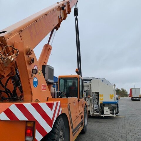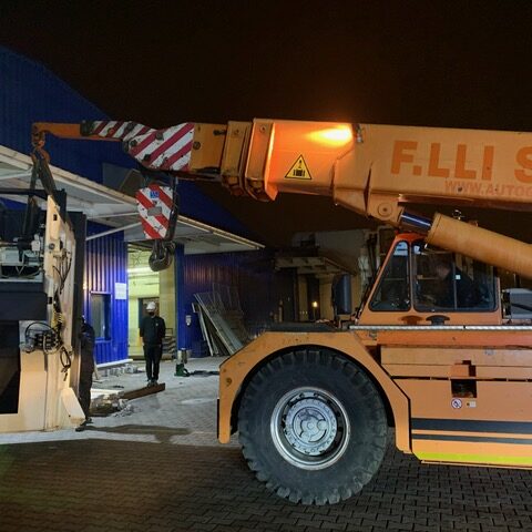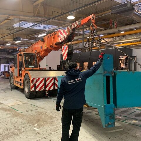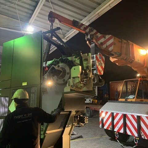 Po przetransportowaniu pracownicy Ruger Expo odbezpieczyli maszyny, rozładowali je oraz rozpakowali wszelkie ich elementy. Maszyny zostałe wstawione na halę i przygotowane do ustawiania i montażu przy miejscu posadowienia. Pracownicy przygotowali również kotwy pod maszyny.